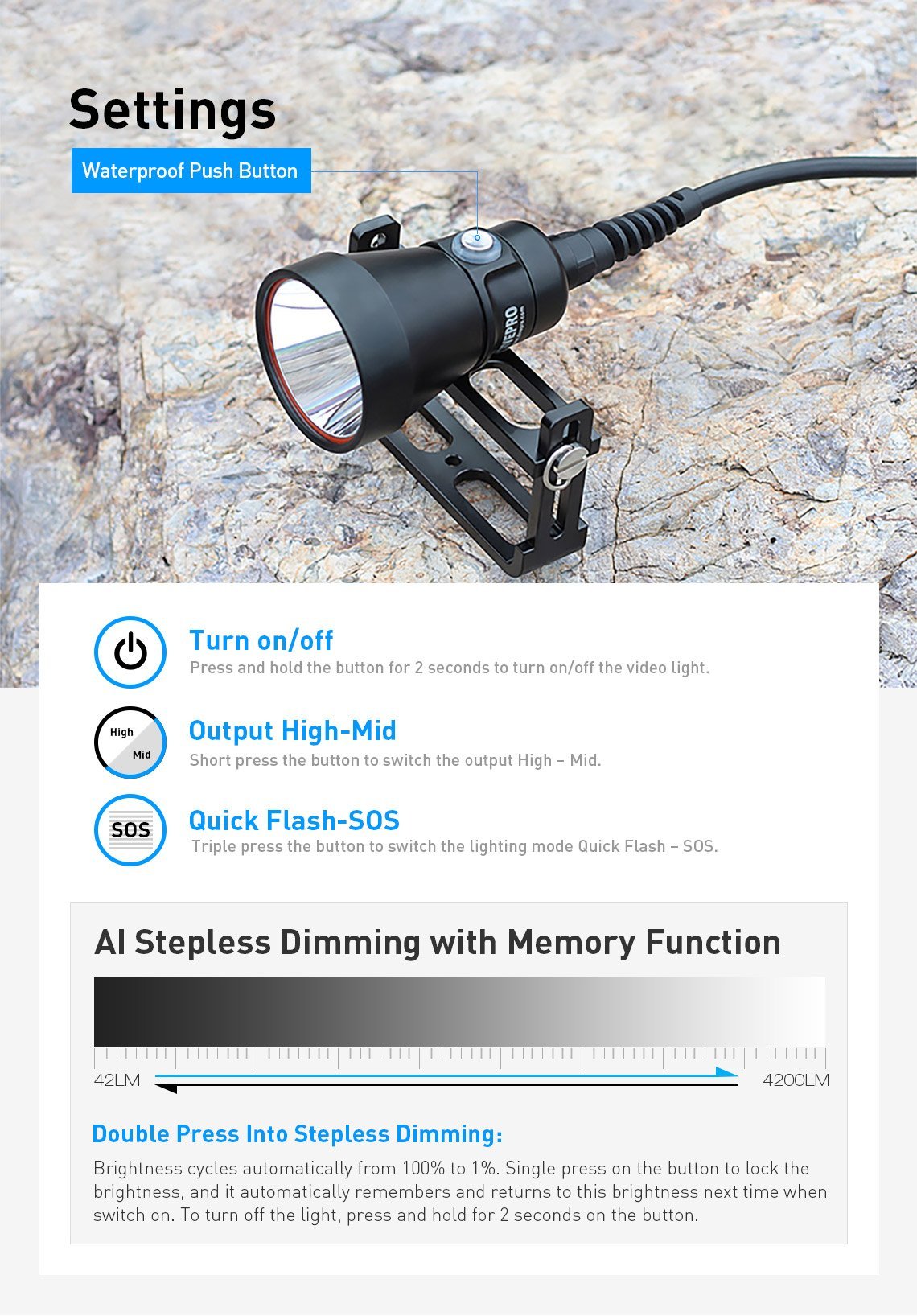 | Output (lumens) | High 4200LM /Mid 2000LM |