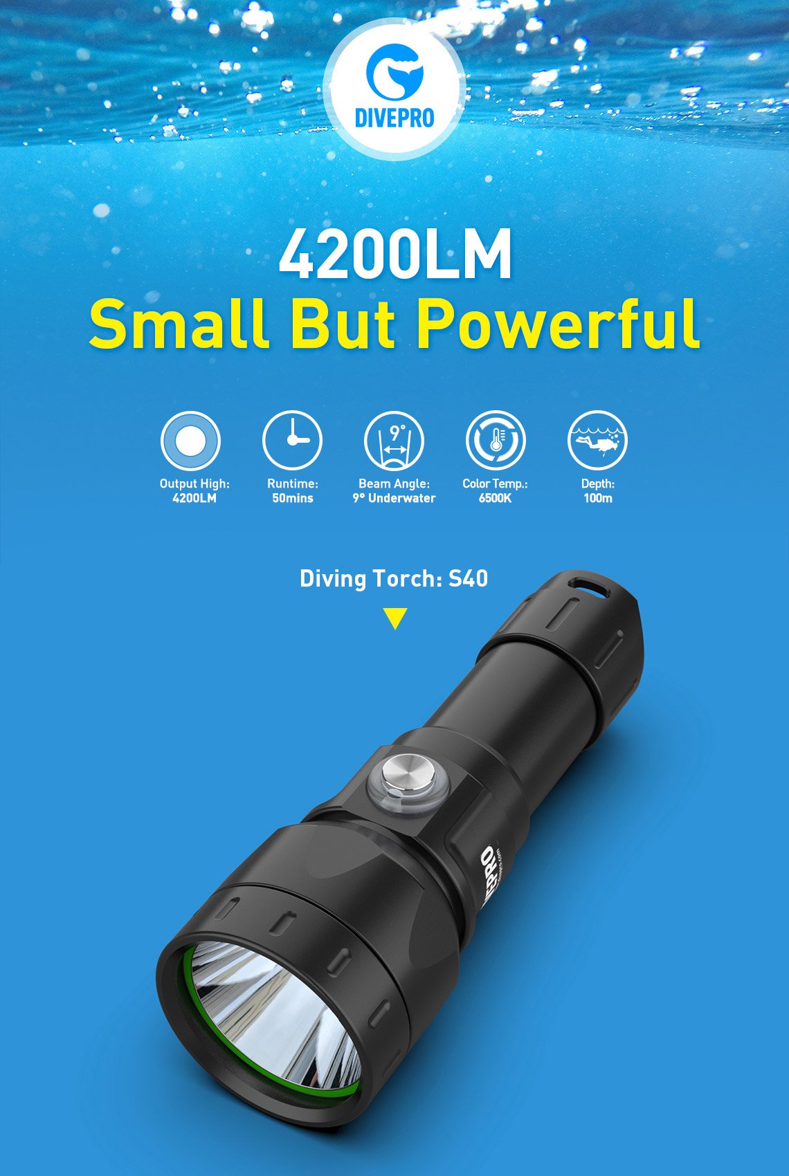 Powerful 4200 Lumen Dive Torch
